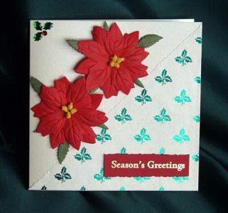 Using silicon glue attach each of the poinsettias to the card.